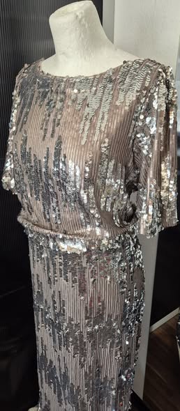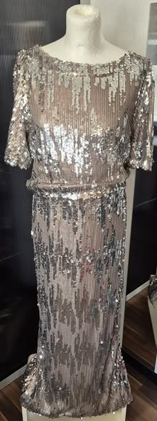 Ballkleid “ Vila “ Größe 40 in Taupe/Silber Pailletten