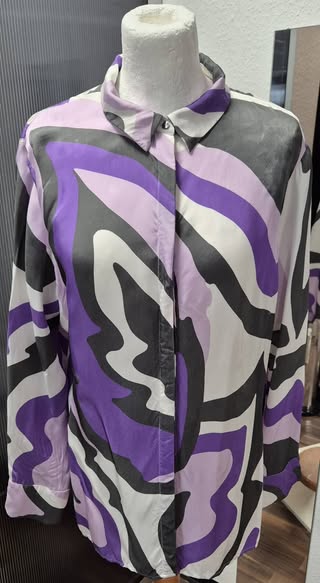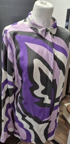Bluse “ Jones “ Größe 42 in Lila/Grau/Rosa/Offwhite gemustert 100% Viscose