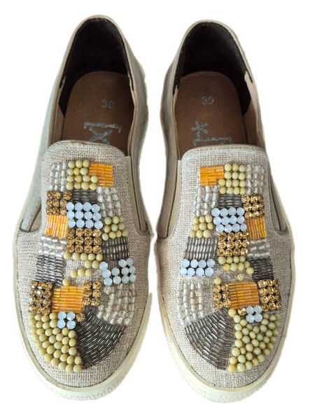 Loafers “ XyXyX “ Größe 39 in Beige/Bestickt Textil/Leder