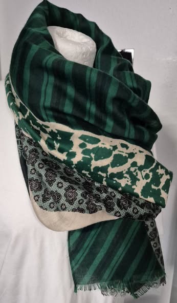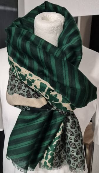 Pashmina “ Made in Italy “ in Grün/Beige gemustert 100% Viscose