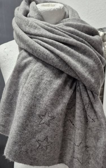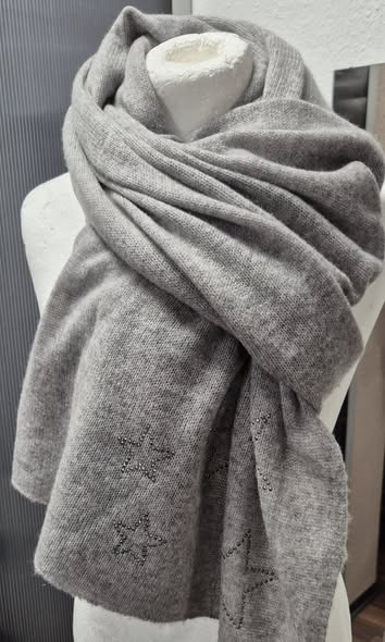 Schal “ Repeat “ in Hellgrau mit Sternen 100% Cashmere